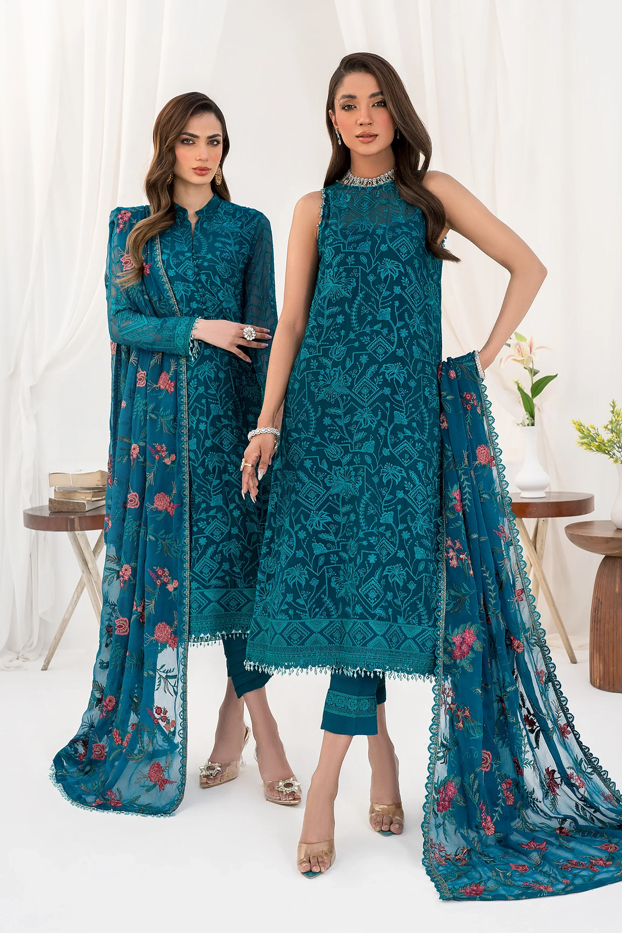 Eye captivating canvas adorned in hued embroidery on a teal canvas, this art piece comes with multi thread shawl crafted intricately to bring life to a subtle base.